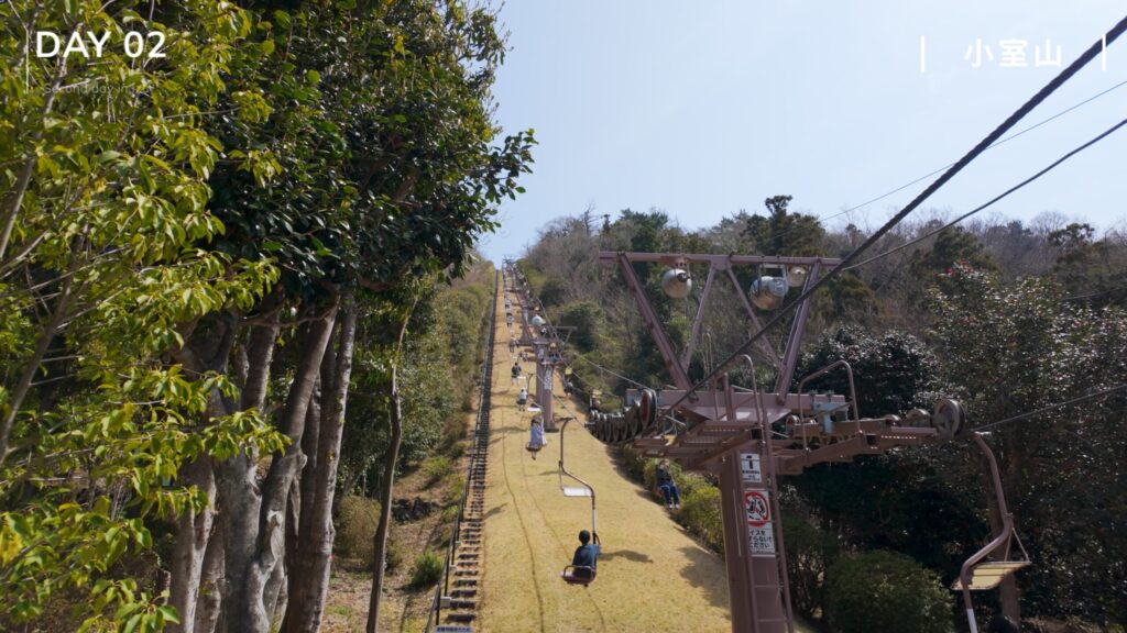 ホテルをチェックアウトしたら、最初に向かうのは小室山