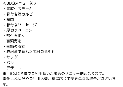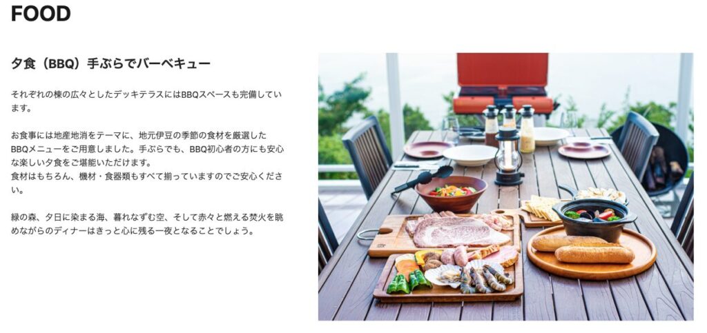 今回はグランピングらしいプランとして、「手ぶらでBBQ」 を申し込みました。