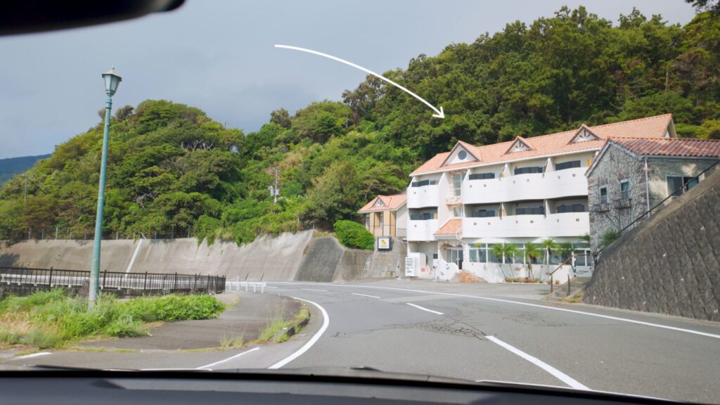手続きを済ませて鍵を受け取ったら、自分の車で施設へ移動。道を10分ほど進むと「BLUE EDEN」の看板が見えてきます。