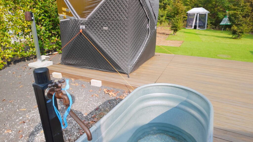 - 本格的なテントサウナや冷たい水風呂