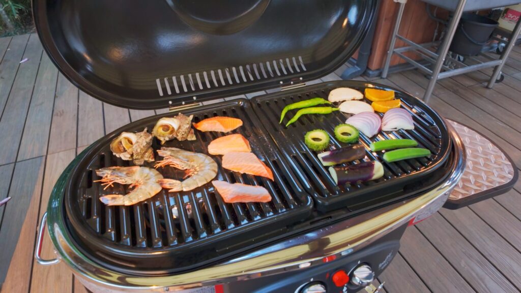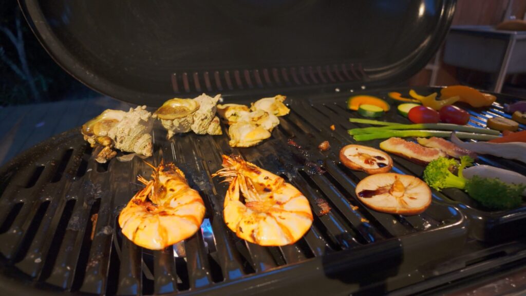 その後は、自分たちでコンロに火を起こし、食材を焼いて楽しむスタイル。