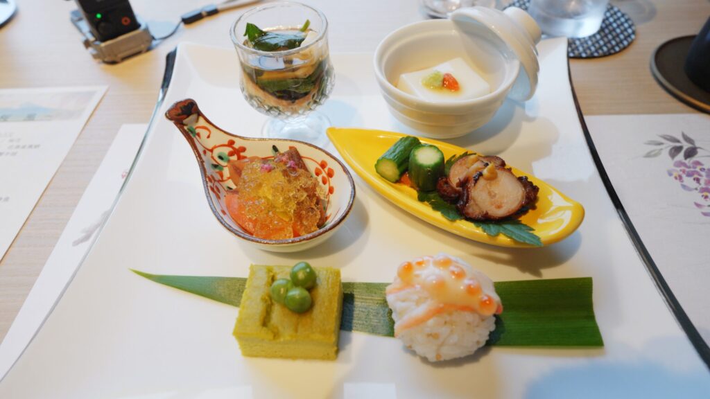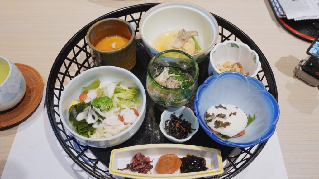 お部屋にはルームサービスもあり、基本的にオールインクルーシブ。冷蔵庫のドリンクは自由に楽しめ、お菓子には系列店「燻製工房 然」のスモーキーなおつまみが用意されていました。これがまた香り高く、とても気に入りました。夕食でも燻製醤油などが登場し、食事全体で“然らしさ”を感じられるのも魅力です。