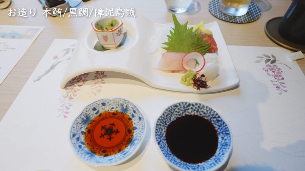 お刺身には、通常の醤油と「燻製醤油」が添えられており、この燻製醤油がとにかくクセになる味わい。香ばしい薫りと旨味が魚の甘みを引き立て、思わずおかわりしたくなるほどです。気に入りすぎて、その場でお土産として購入してしまいました(部屋から注文できるのも嬉しいポイント)。
