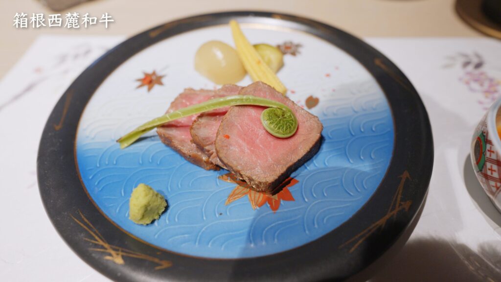 メインには「箱根西麓和牛」が登場。ジューシーで柔らかな肉質と、噛むほどに広がる旨味が印象的で、満足度の高いディナーとなりました。