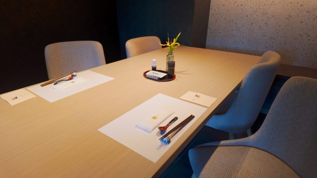 夕食は落ち着いた半個室で、ゆったりといただきます。季節の旬を取り入れたこだわりの創作料理が並び、一品一品が旅の楽しさを引き立ててくれます。