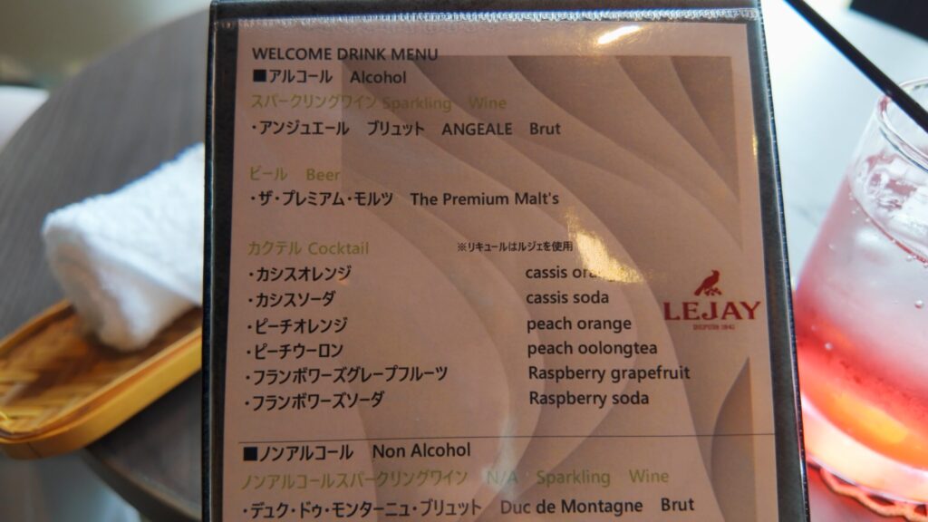 ウェルカムサービスでは、豊富なドリンクメニューの中から好みを選べ、添えられたチョコレートが旅の疲れをやさしく癒してくれます。
