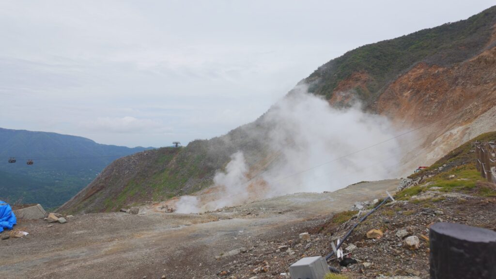 アクセスはロープウェイか車が便利。より間近でこのダイナミックな自然を体感するなら、「大涌谷自然研究路」がおすすめです。ただし、こちらは事前予約制。僕は予約が必要なことを知らずに行ったため、残念ながら立ち入ることができませんでした…。次回は必ず予約して、さらに奥まで探検してみたいと思います。