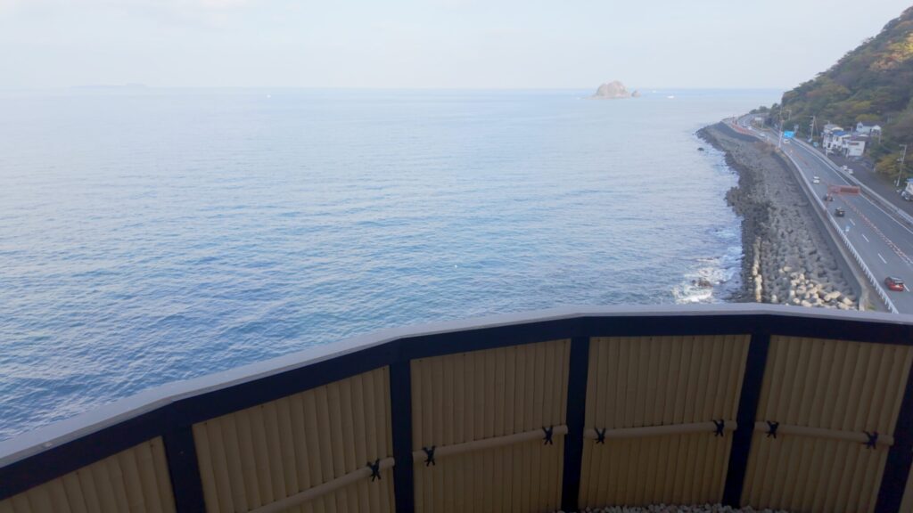 「海の目の前」という表現では足りず、実際には海のすぐ横に建っているような感覚です。