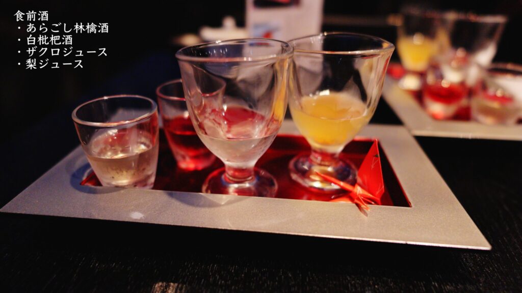 夕食は海の幸を中心としたコース内容で、食前酒からメインまで、どれも美味しくいただけました。