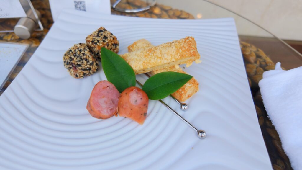 軽食はシェフこだわりの内容で、おつまみ系からお菓子まで全4種類。