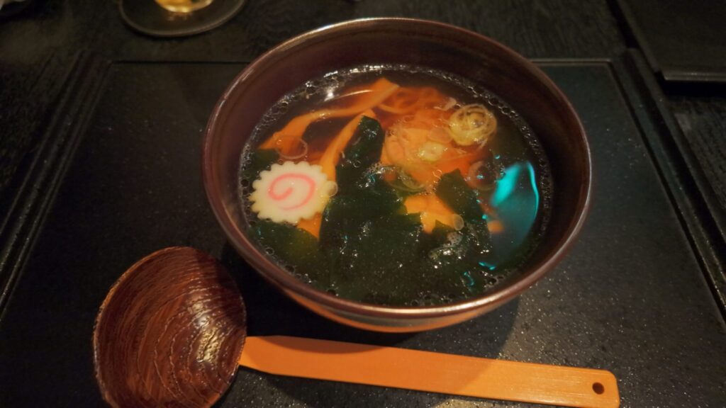 味は、どこか懐かしいカップラーメンのわかめラーメンを思わせる味わいで、重すぎず、夜食としてちょうどいい一杯です。