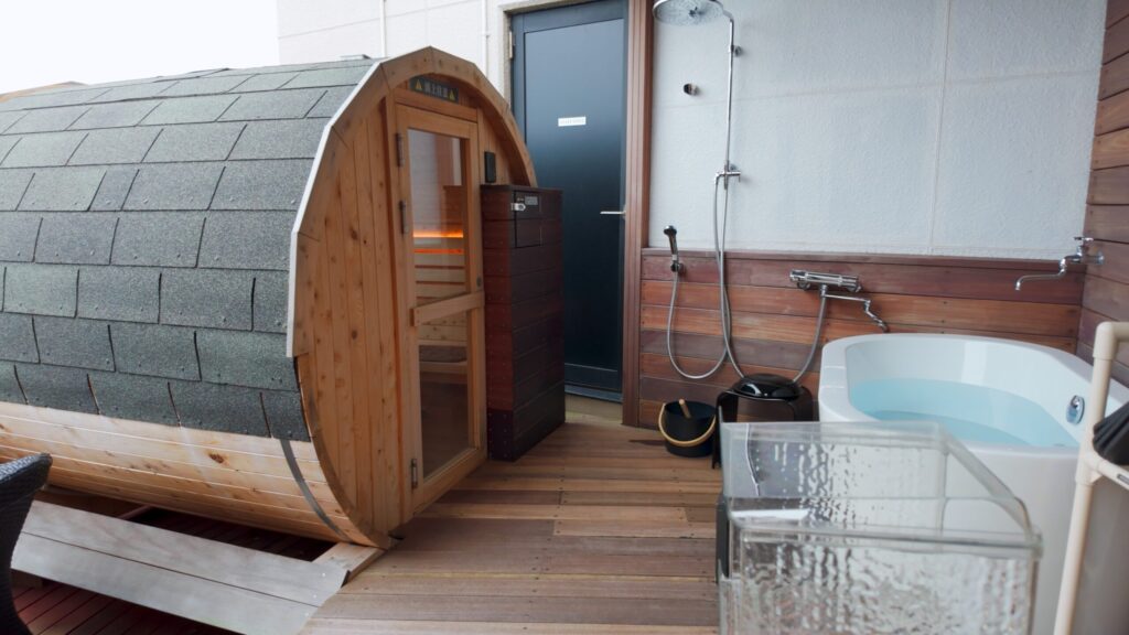 すぐそばには水風呂が用意されており、そのまま外気浴も可能。