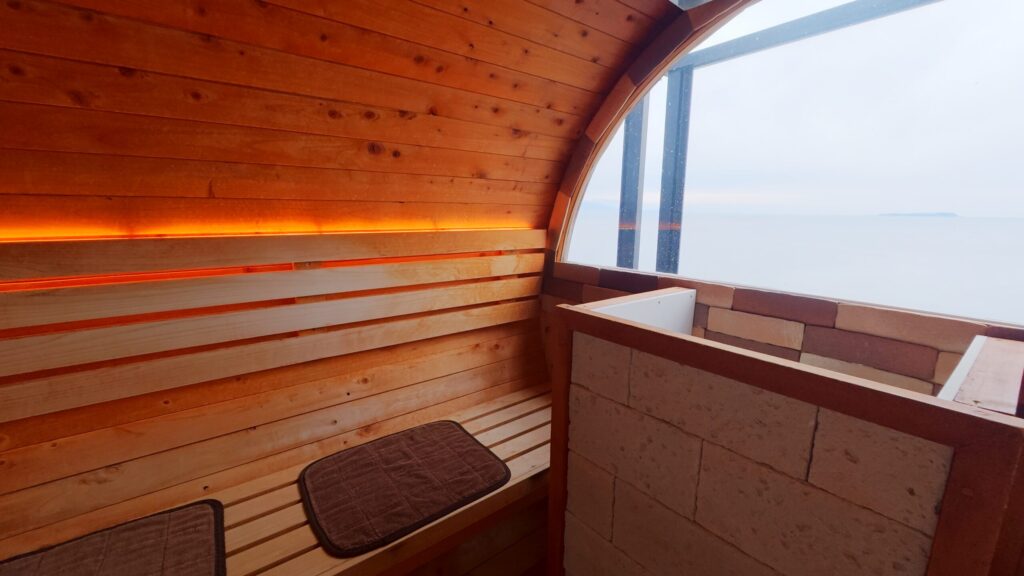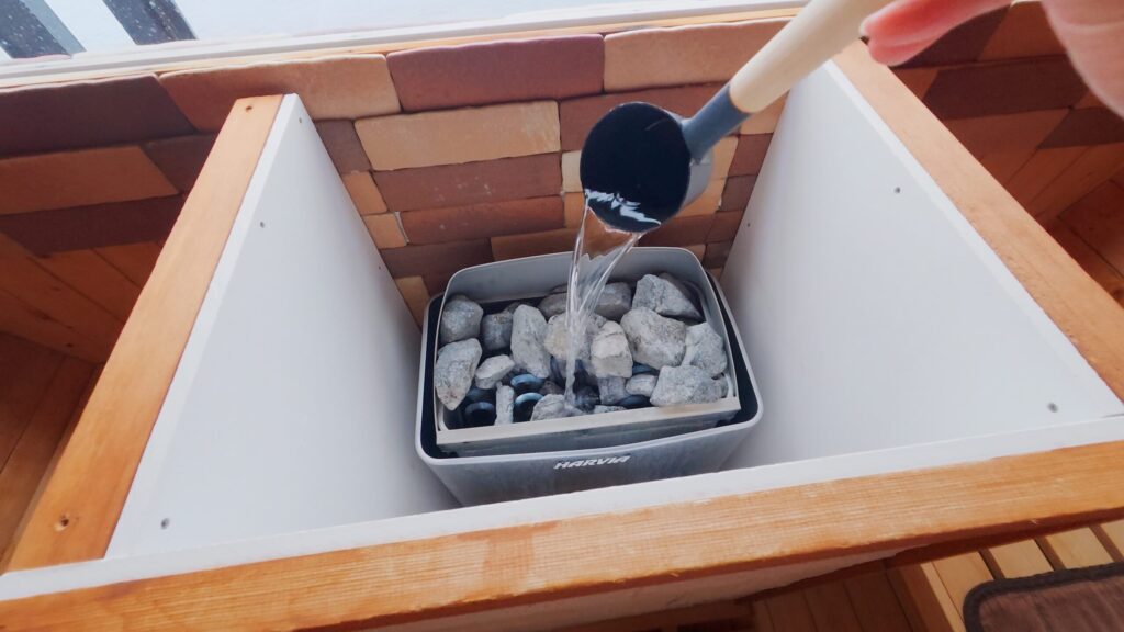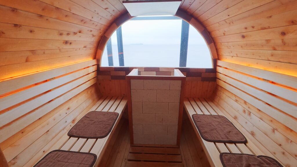 中はしっかりと熱く、ロウリュも楽しめる本格仕様です。