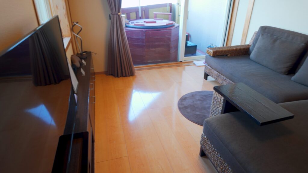 こちらにはデイベッドとテレビが設置されており、景色を眺めながらのんびり過ごしたり、少し横になったりと、使い勝手のいい空間です。