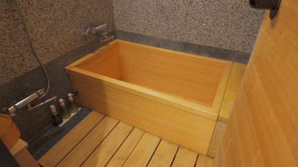 充実した一日だったこともあり、この日はこのままゆっくり休むこと…と思いましたが、貸切露天風呂が空いていたので、お風呂に入ってから寝ました。