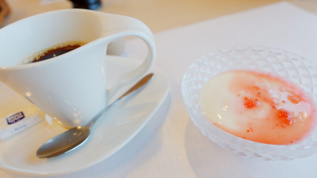 食事中はドリンクのサービスも充実しているだけに、「デザートと一緒にもう一杯ドリンクを楽しみたかったな」と思うのが正直なところ。