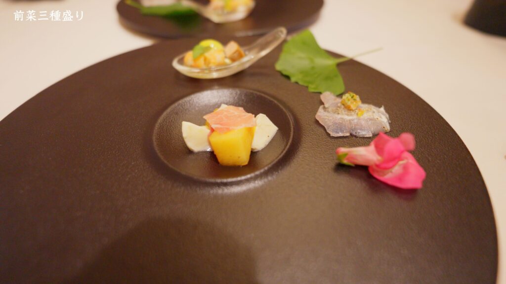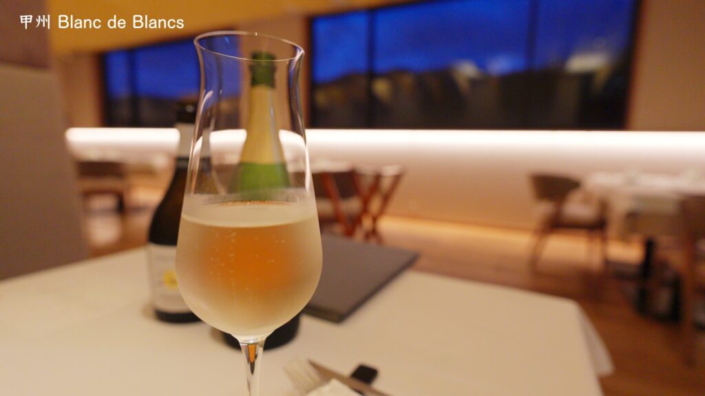 お酒の種類も豊富で、ワインペアリングも可能。今回は甲州のスパークリングをいただきました。
