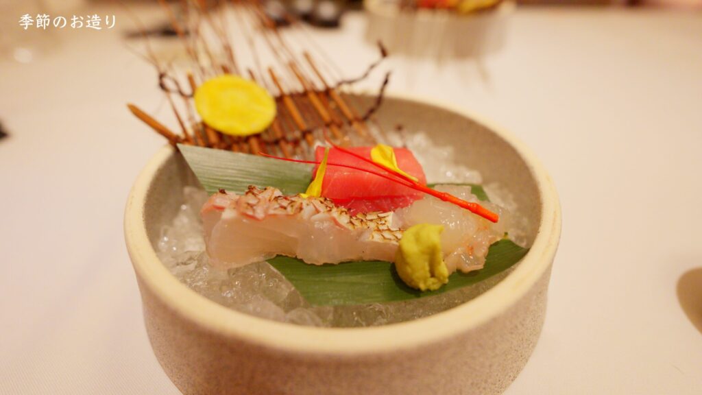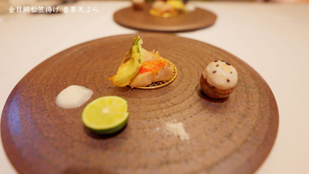お刺身でいただく鯛の上品な甘み、そして金目鯛の松笠揚げの香ばしさと食感は、まさに絶品でした。
