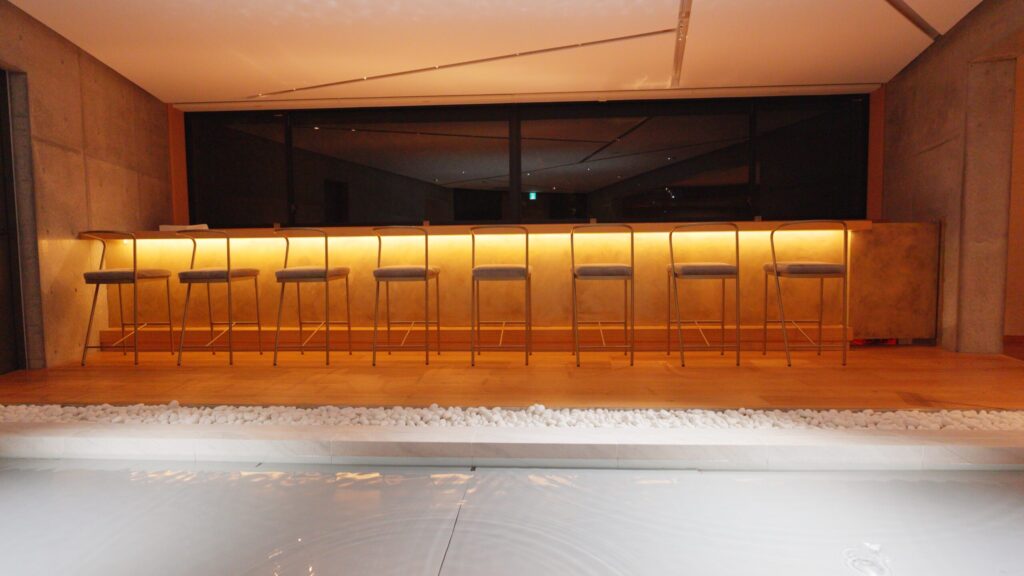 館内に入ると、外観の印象とは一変します。木の温もりに包まれ、柔らかな間接照明が落ち着いた空間を演出しています。