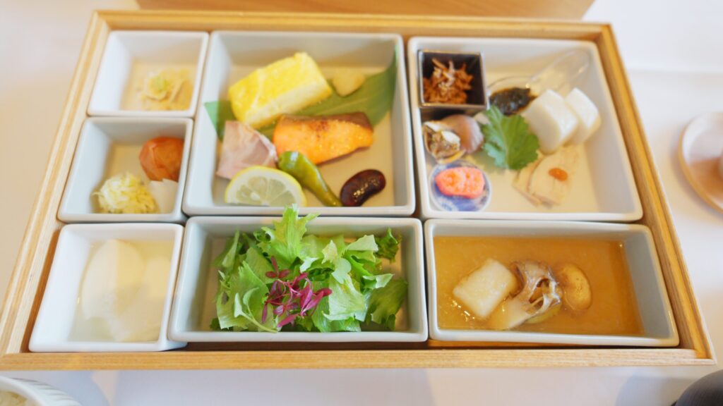朝食は、たくさんの小鉢が並ぶ旅館らしいスタイル。ひとつひとつの料理に丁寧さが感じられ、「やっぱり旅の朝はこれだな」と思わず頷いてしまいました。