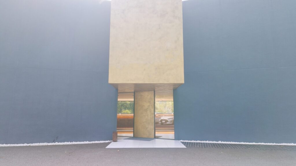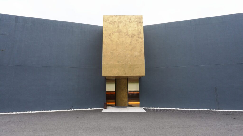玄関口は金色に輝いており、周囲のグレーの壁とのコントラストが美しく、「非日常の入り口」に立ったような感覚になります。