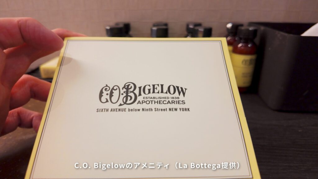 使用されていたのは、高級ホテルにもアメニティを提供している「LA BOTTEGA」社の COBIGLOW。上品な香りと使い心地で、細部まで宿のクオリティの高さを感じました。