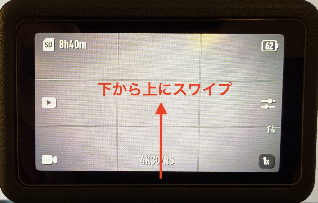 まずは、撮影画面を下から上にスワイプします。