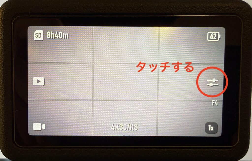 まずは、撮影画面の右側にある「2本線のアイコン」をタッチしてください。
