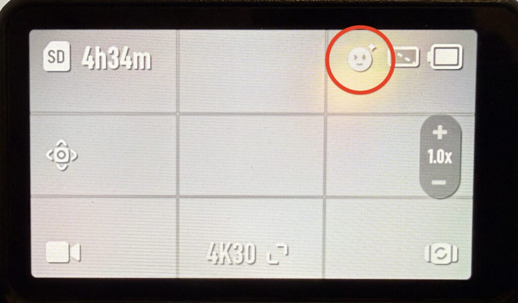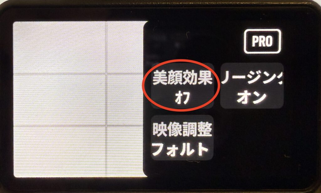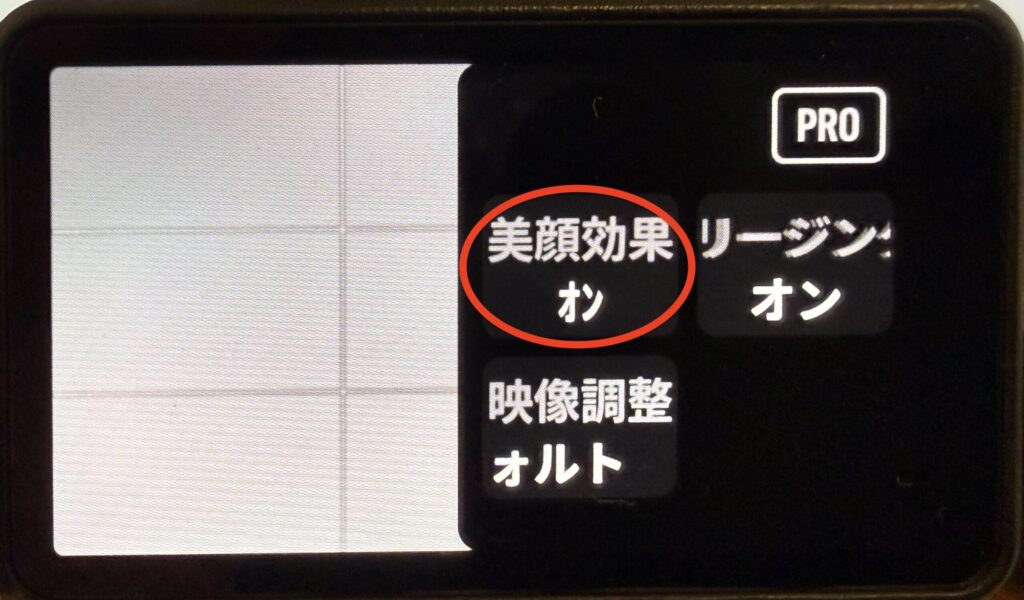 美顔効果をオンにしても、Osmo Pocket 3本体の画面上では補正された映像は反映されません。
