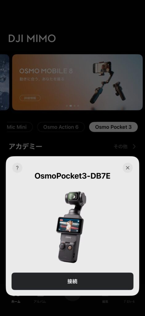 すると、Osmo Pocket 3の撮影画面とアプリが連動します。