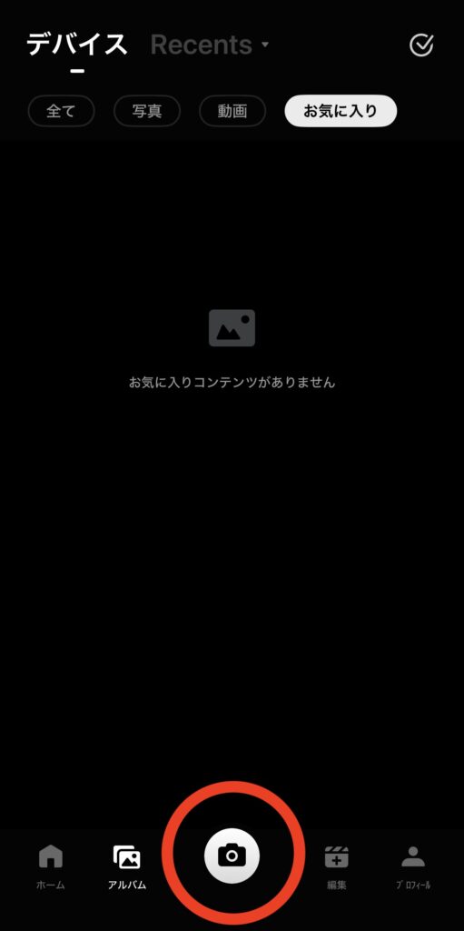 接続が完了したら、画面下部に表示されているカメラのアイコンをタッチします。