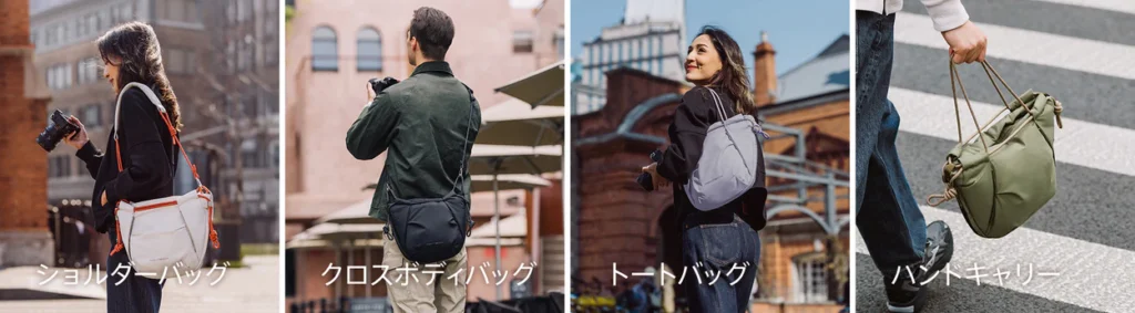 普段の服装に合わせたり、差し色として選んだりと、「カメラバッグ=黒一択」にならないのは嬉しいポイントです。