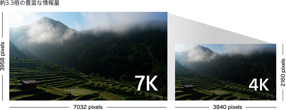 多くの場合、6Kや7K分の映像を一度読み取り → 4Kに縮小(オーバーサンプリング処理)しています。