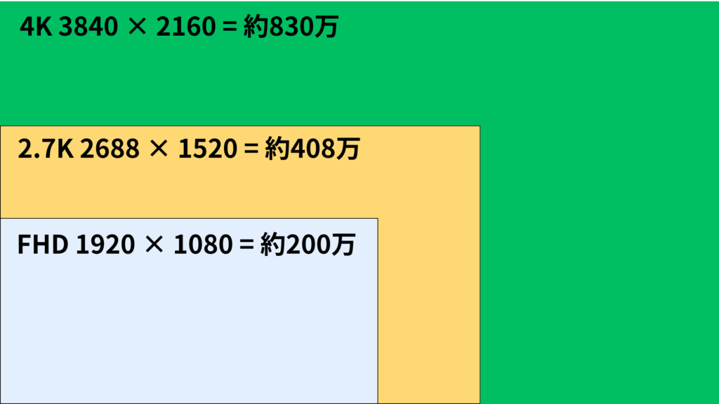 綺麗な動画といえば4Kと思い浮かべますが、画素数にすると4Kは約830万画素です。